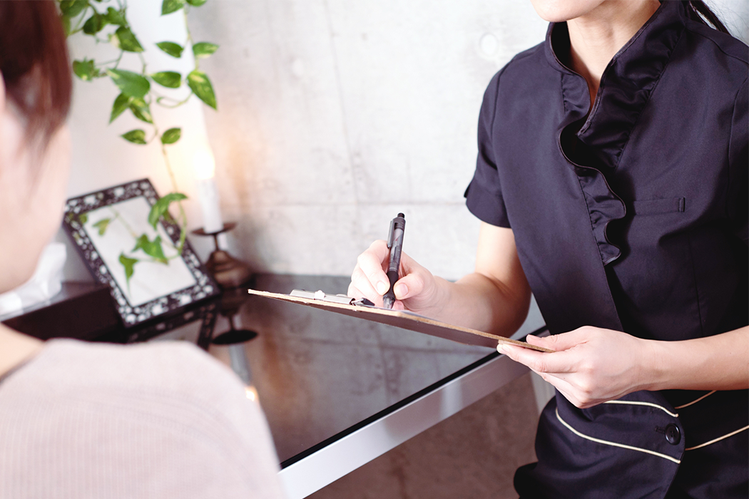 その代わりに、お客様との会話の中で施術内容をまとめていくことで、オーダーメイドの施術メニューを提供。お客様の要望を引き出しながら、100%の力で応えられるように考慮したサービスを、時間内の間で細かく調整しながら行います。