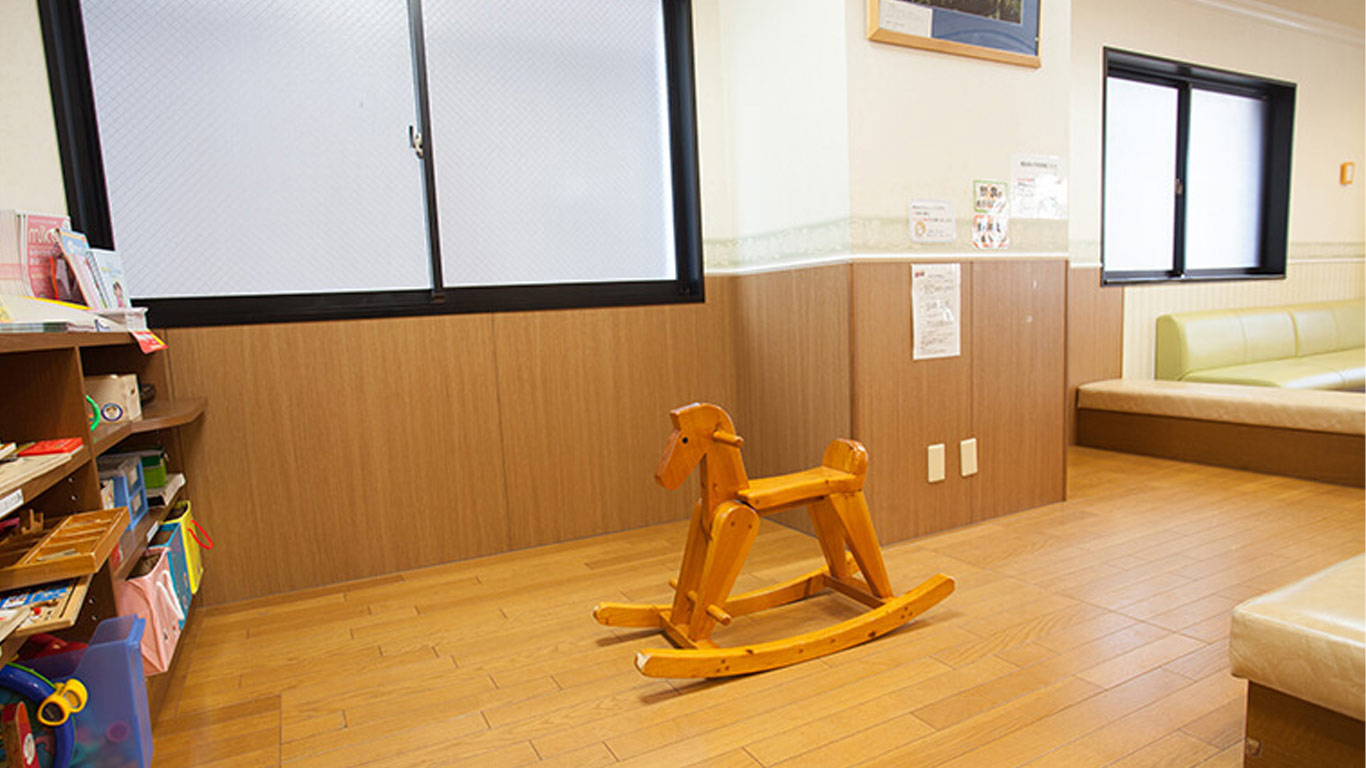 院内もお子さんの恐怖心を取り除くためにさまざまな仕掛けがあるのだそう。待合室には、たくさんの絵本やオモチャなどが準備されているため、お子さんも待ち時間も退屈することなく時間を過ごすことができます。