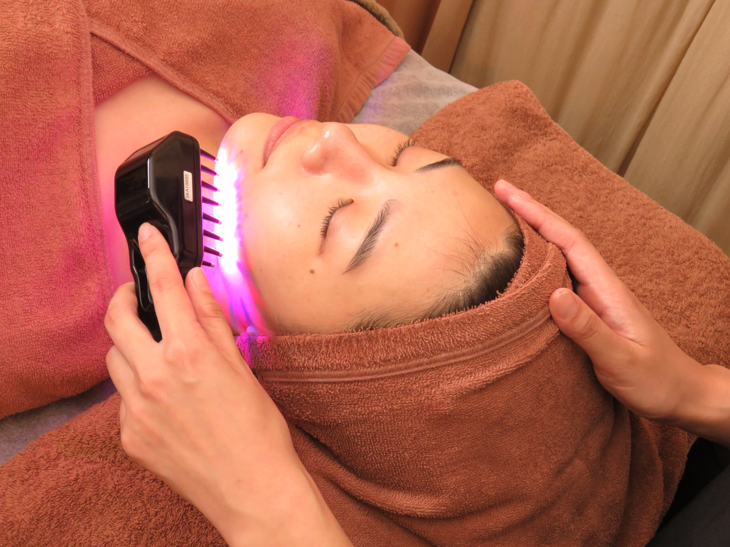 お顔全体的に広く照射できるものと、小鼻や目尻など細かいところに照射するものの2種類を揃えることで、より効果的な施術を可能にしています。