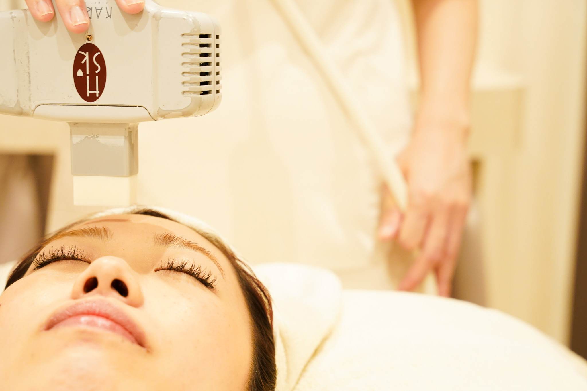 照射温度40度弱と低温処理で可能なので、全くといっていいほど痛みを感じません。