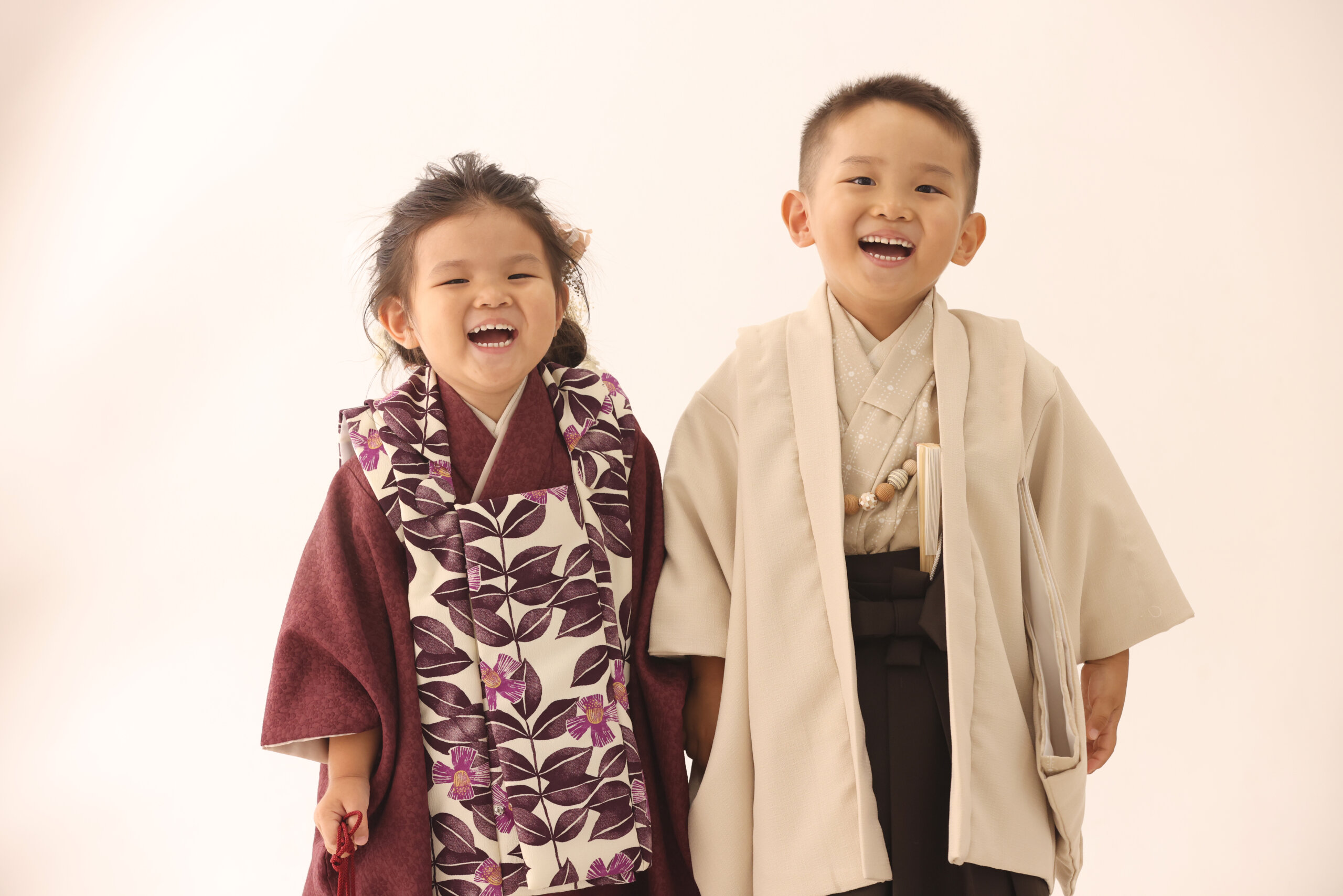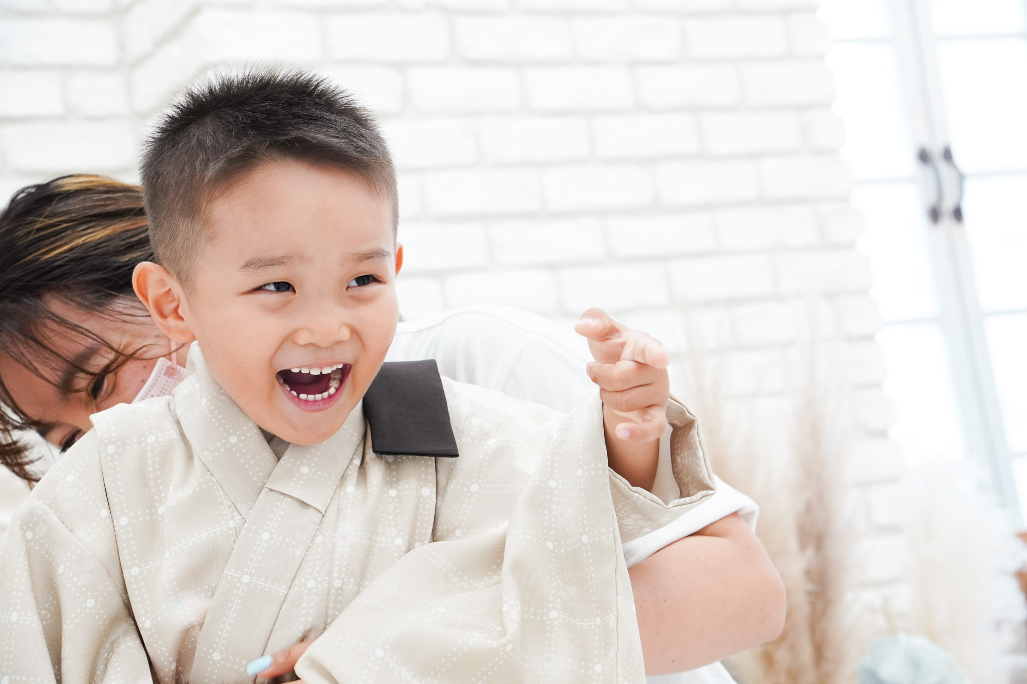 慣れない着物に嫌がって泣いてしまうお子様は多く、パパやママが頭を抱えるポイントでもある「着付け・ヘアセット」