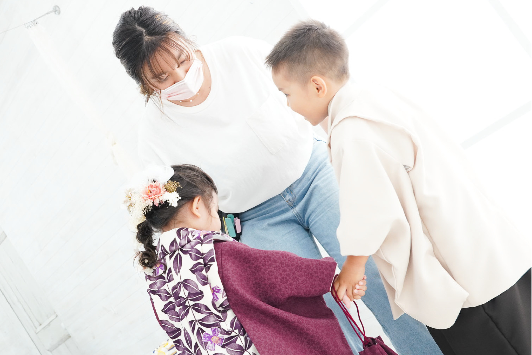 撮影では、着付けやヘアセットだけでなく撮影の流れ、全てを調整する「コーディネーター」さんと、撮影を行う「カメラマン」さんが2人1組となって、ご家族の1日のスケジュールに寄り添います