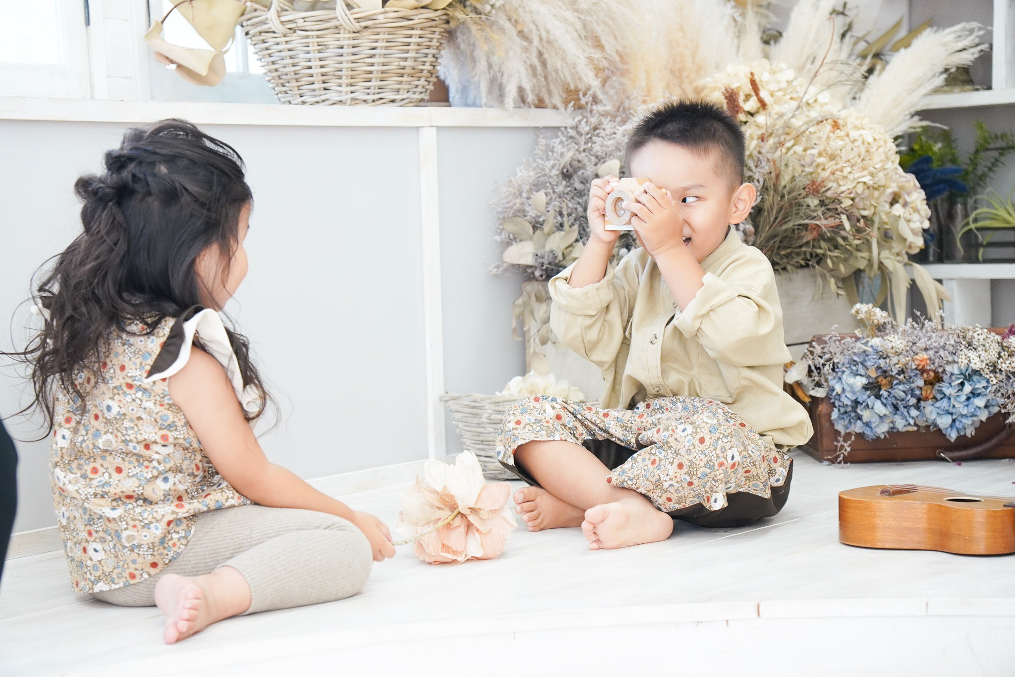 部屋中におもちゃが置いてあり、好きなように遊ぶことができるので、お子様たちにとってはまるで1つのテーマパークのような撮影ルームで、お子様のいつもの表情をより自然に出すことができます。