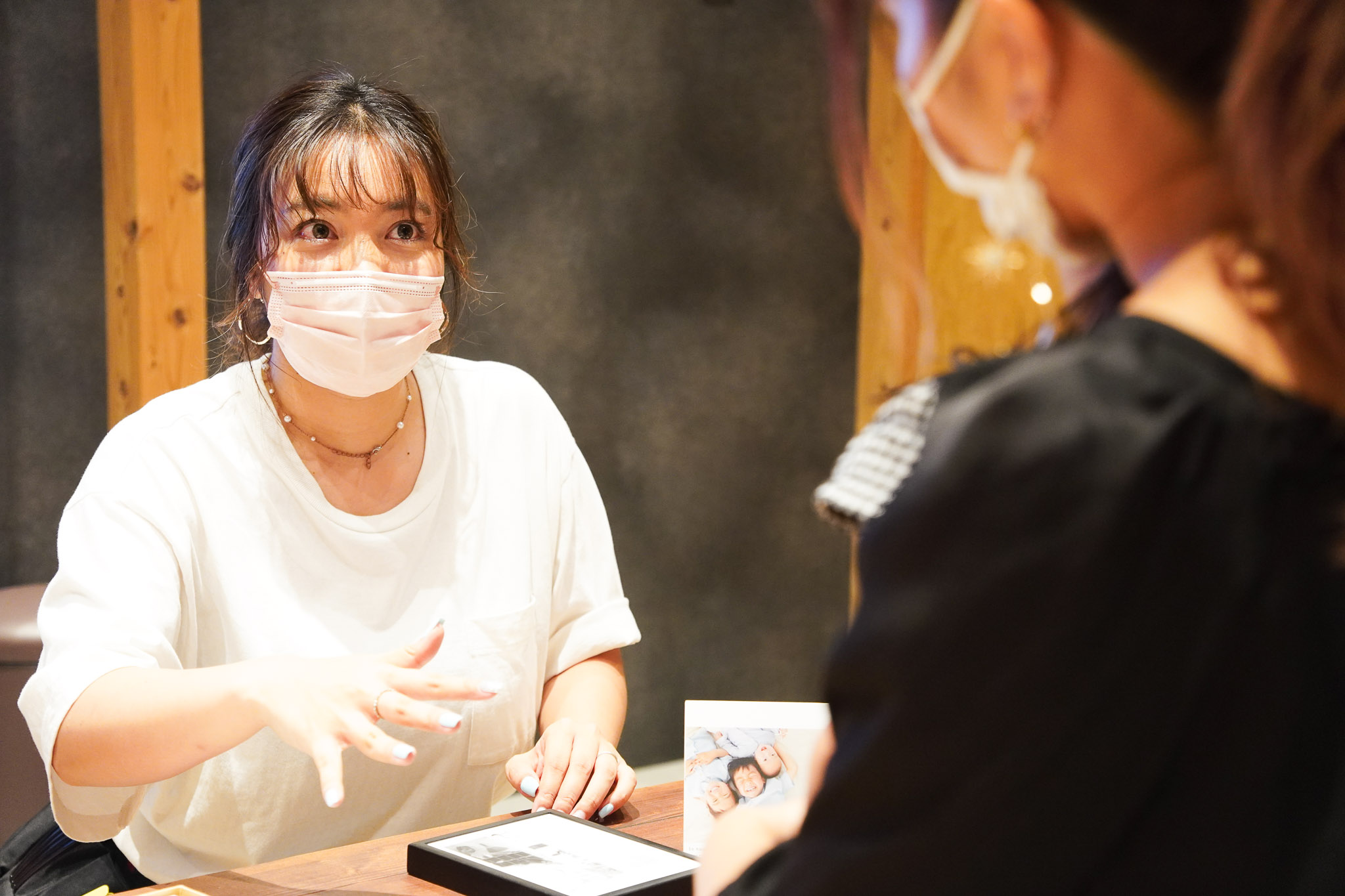 お客様の1番の目的に応じて、家族らしさ・お子様らしさを写真に残せるようにお子様の年齢や性格、最近好きなもの、家族模様など、さまざまなことをヒアリングしていただきます。