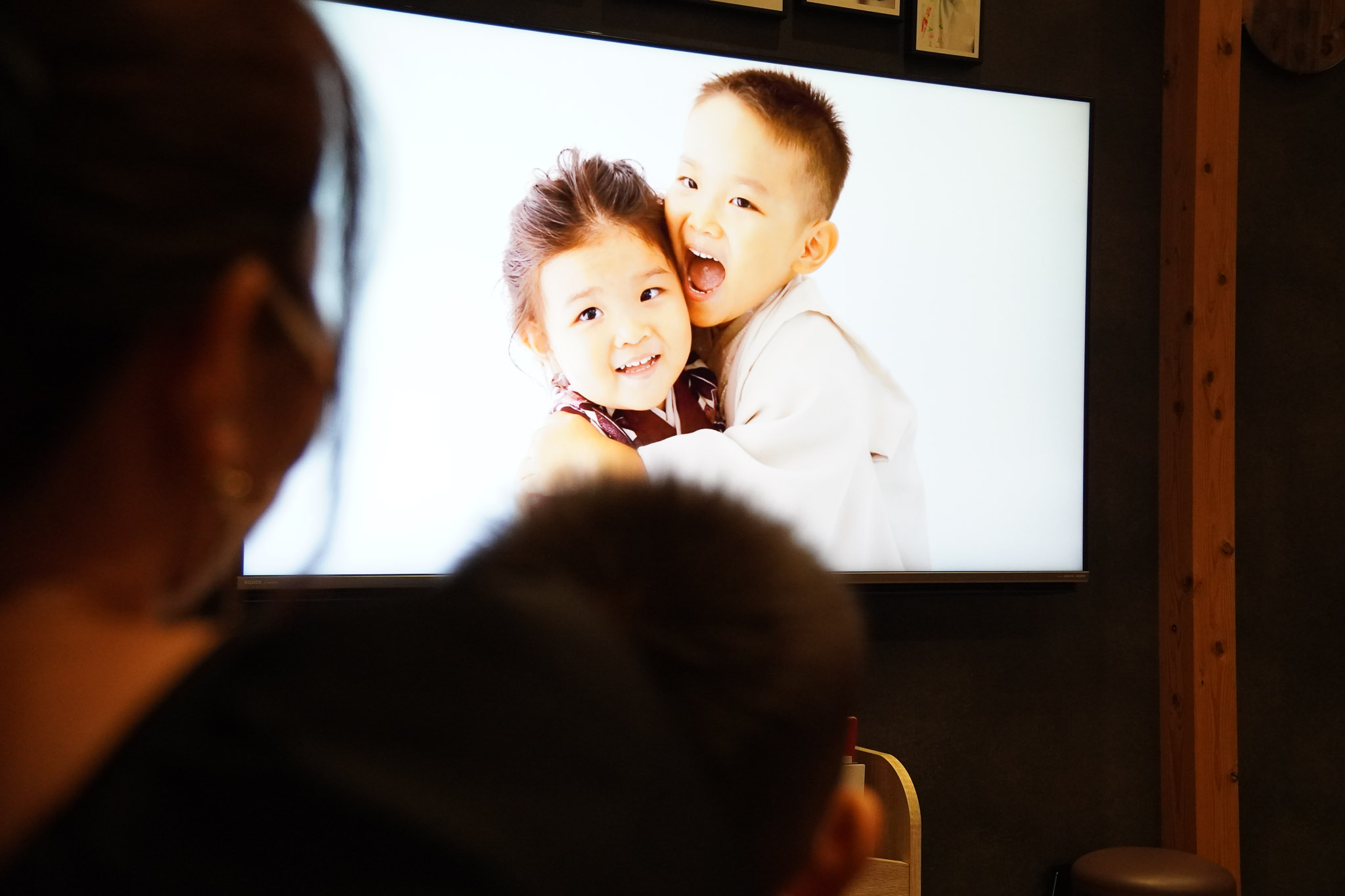 全ての撮影終了後、モニタールームでスライドショーを見ながら家族だけの落ち着いた時間を過ごすことができます。