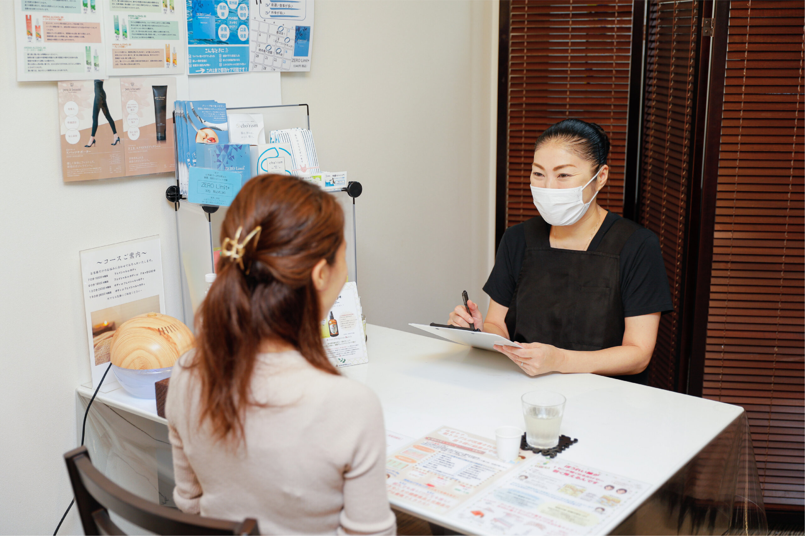施術時間に含めないカウンセリングは30分程で、しっかり話を聞いて最適なコースを提案してくれるので安心です。