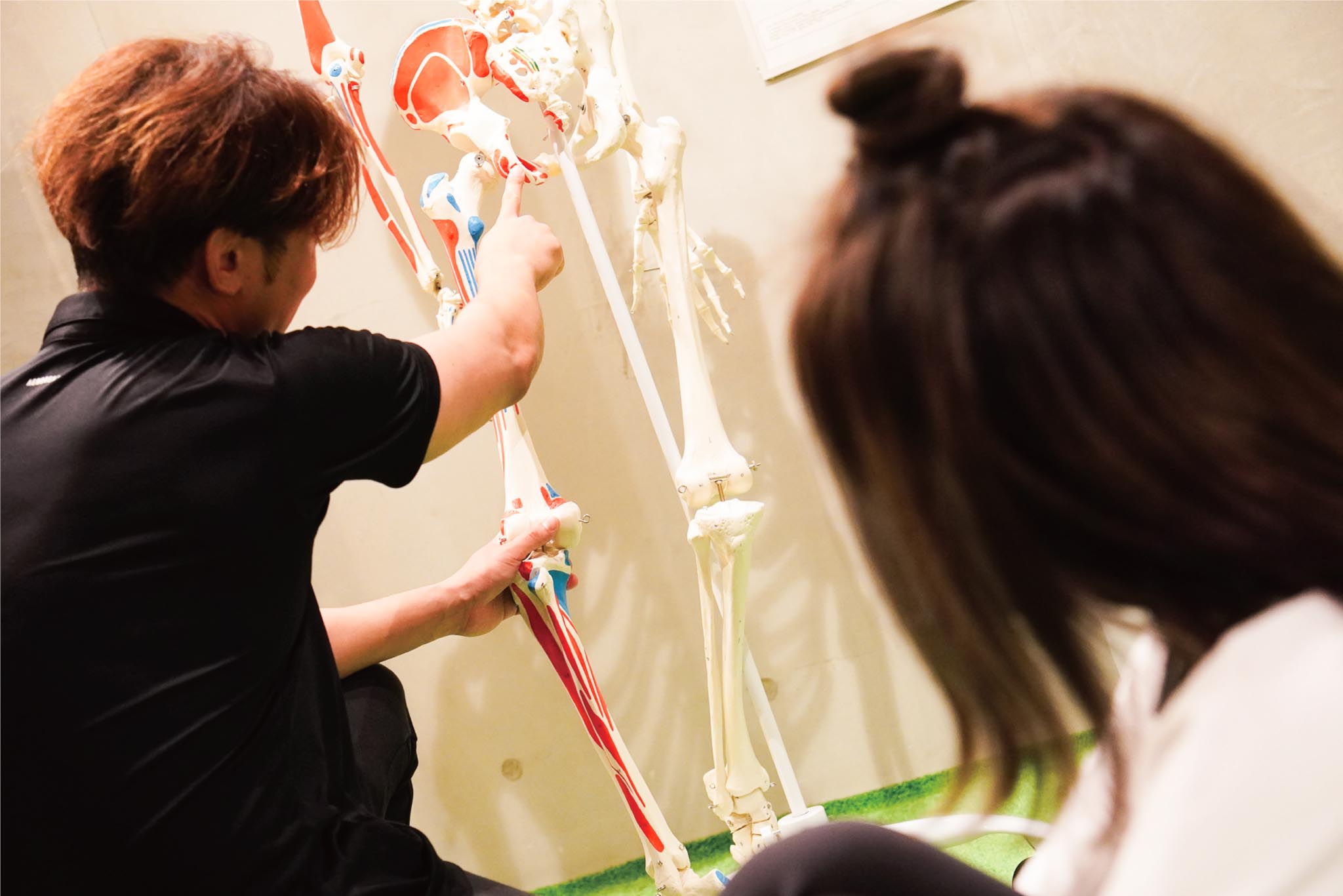 解剖学の知識を活用して、アライメントチェックで原因の筋肉を評価します。筋肉が血管を圧迫しているので、トレーニングやマッサージを受けるとたちまちケガが改善され、姿勢もよくなるのだとか・・!