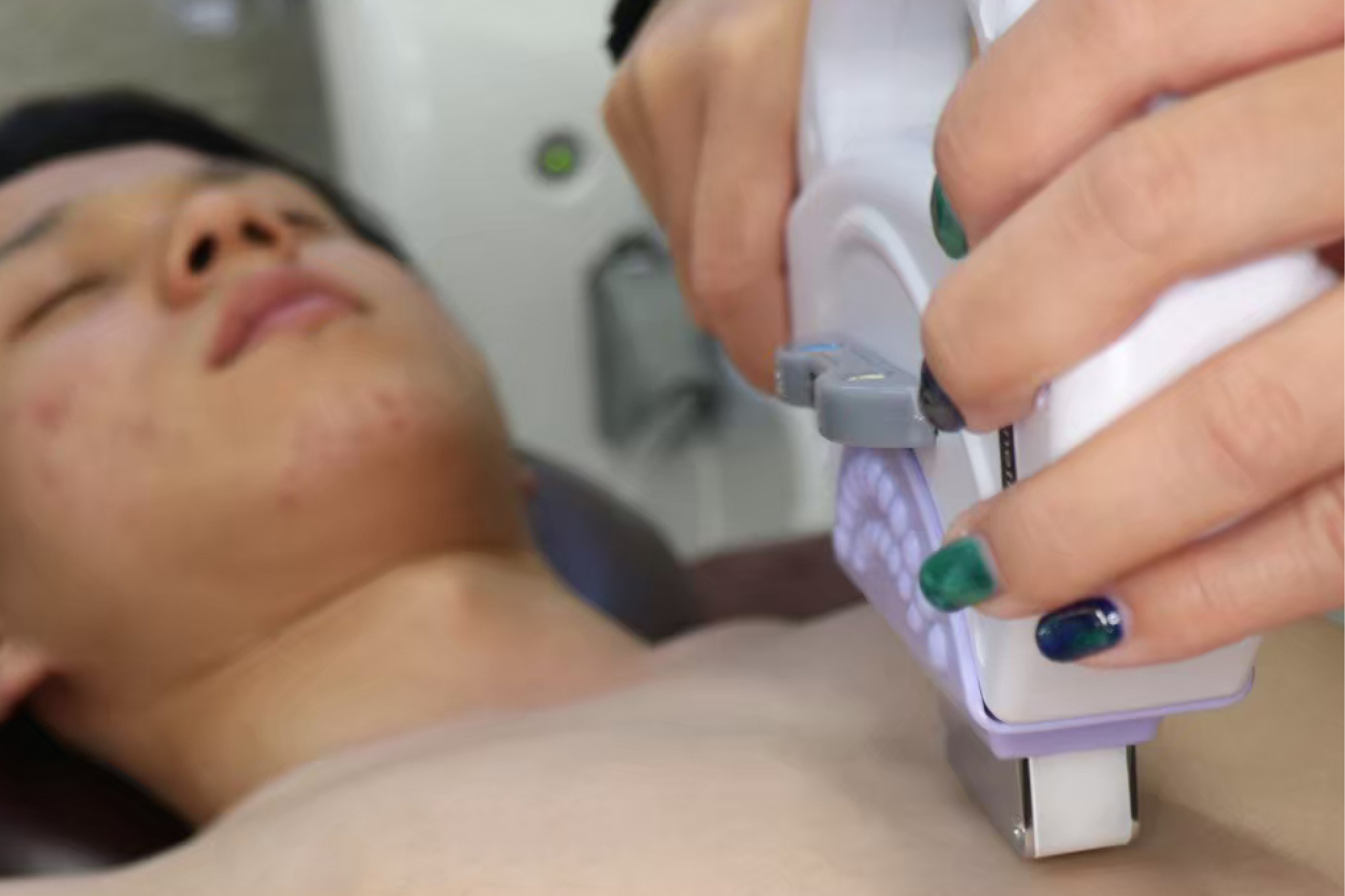 これまでの脱毛機器は輪ゴムでパンっ!と弾かれたような鋭い痛みがありましたが、『Beauty Salon Nine』の脱毛機器は「え!?今当てた?」とお客様が驚くほど痛みが少ないそう。